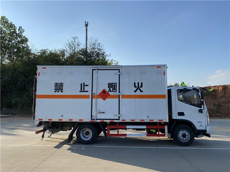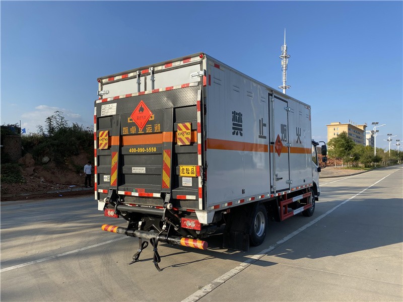 复合厢体结构:外板采用优质冷轧钢板,内饰为导电性能良好的铝平板有透气孔,矩形骨架结构内部填充防潮阻燃挤朔板,复合加铆合工艺。厢体四周铝合金包边及包角,车厢底板铺设防静电胶皮,厢体前脸50公分高铺设防静电胶皮。后部设置对开门,可选装侧门位置,厢体内部两侧安装捆绑货物的卧环。厢体内部安装气体感应器及防盗报警器。车厢一周粘贴橙色反光带,箱体粘贴菱形告示牌,安全告示牌,危险品牌,箱体安装示廓灯(前白后红),拖地静电带,等电位连接。可选装液压升降尾板。严格按照公告尺寸制作。