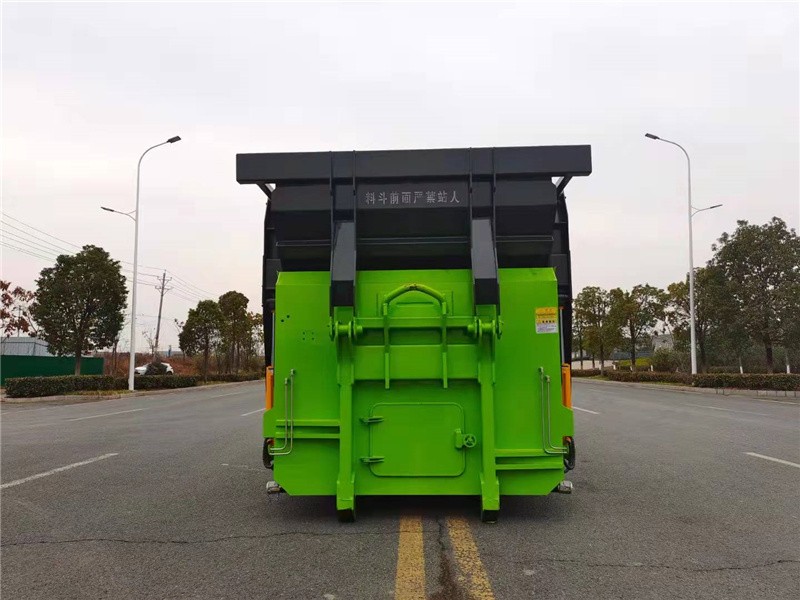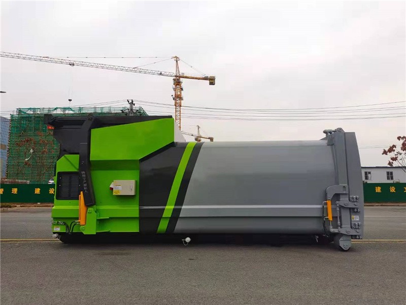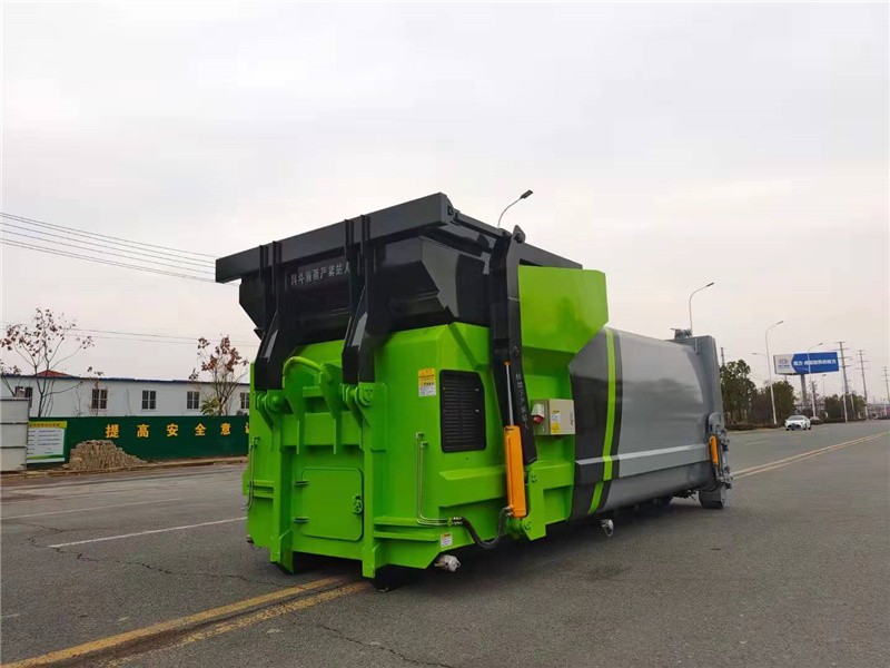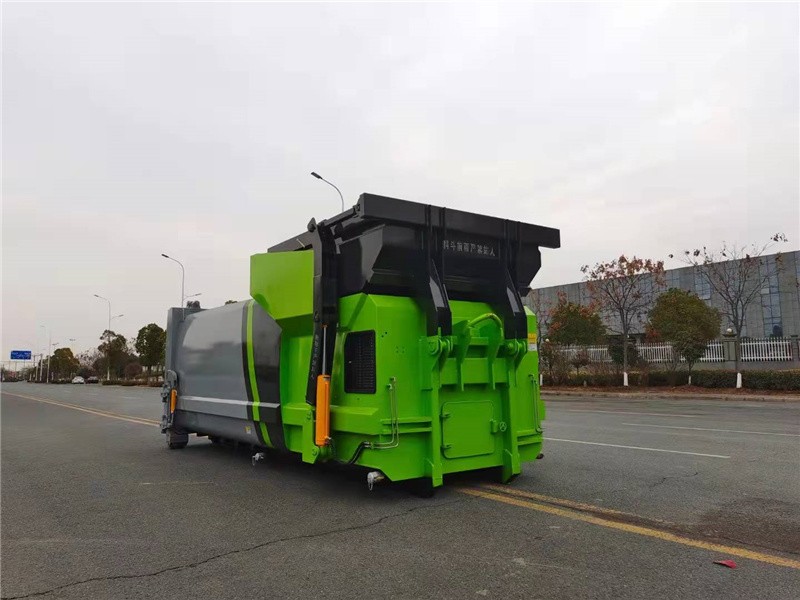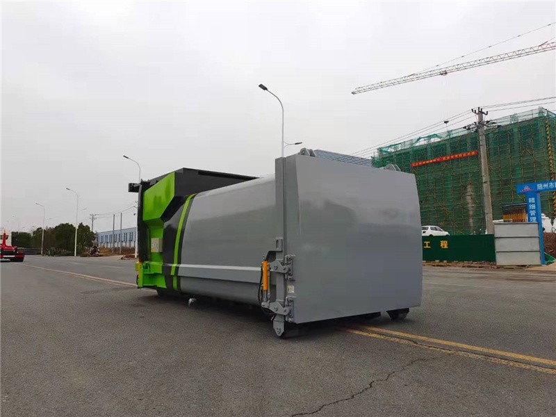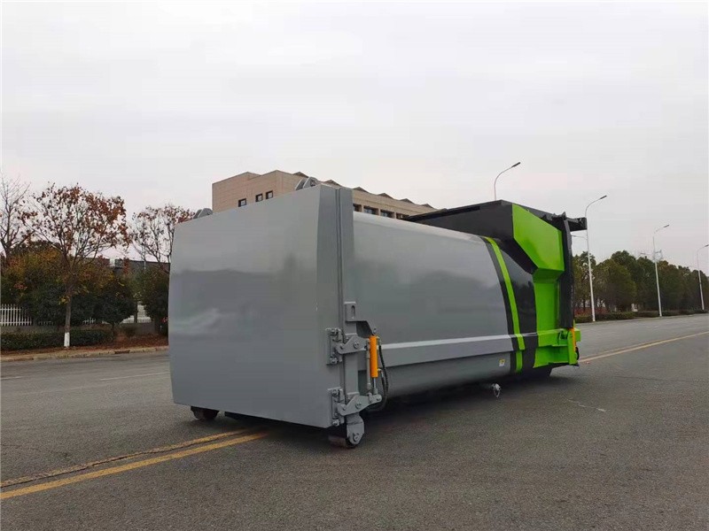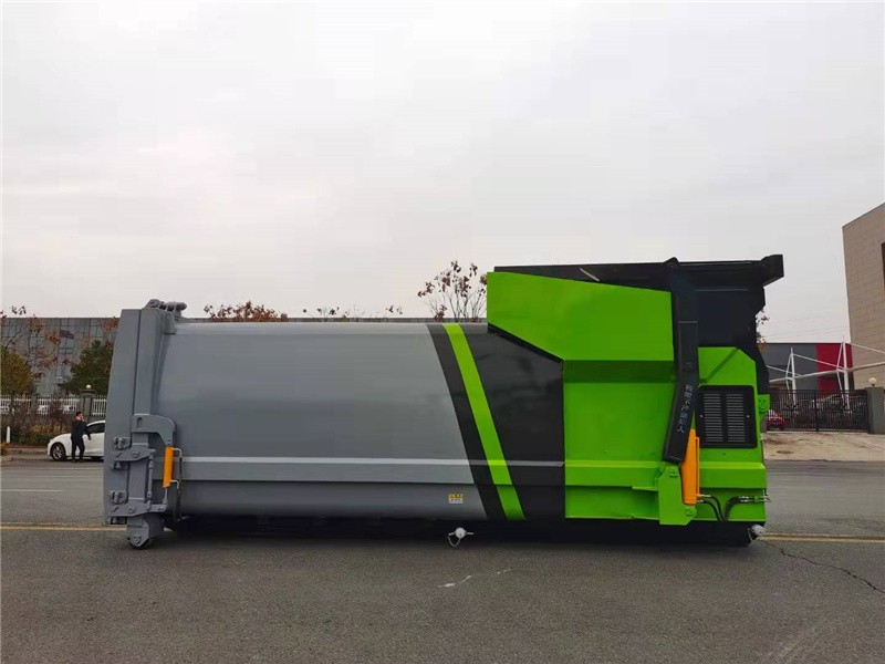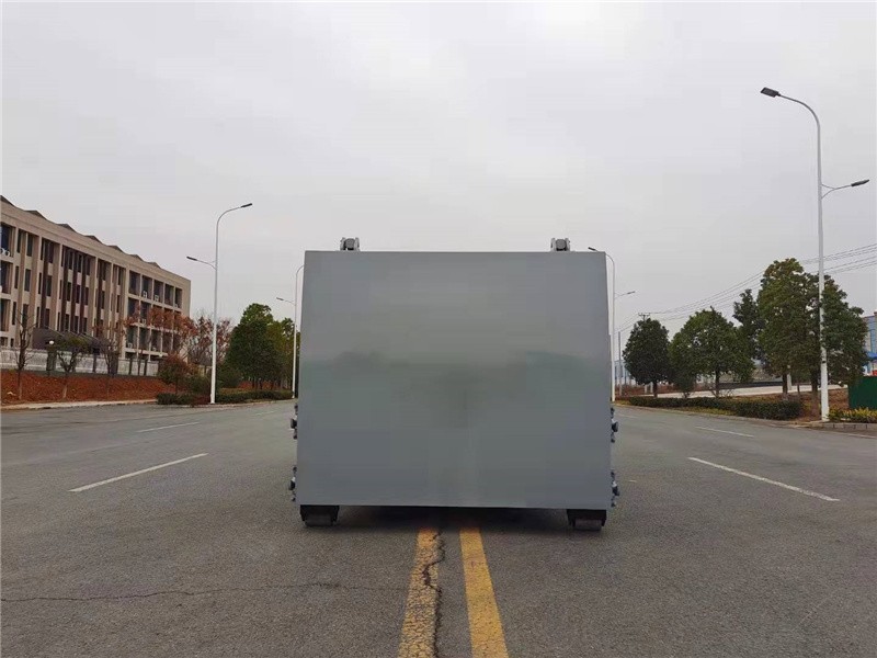 箱体外旁边面选用全体无焊接圆弧结构,箱体强度高,线条流通,选用高强度钢板满焊而成。箱体表里外表都通过喷丸和特别防锈。防腐处理;在箱体前部设有污水排放口,左右对称安置,垃圾压缩过程中发生的污水可通过排放口排放到污水沟或指定地址。
