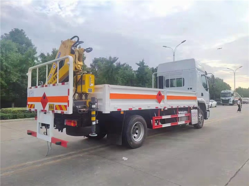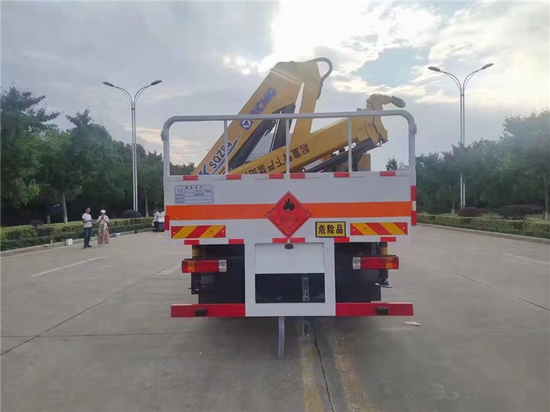 2、后置折臂吊机吊装更稳定,同型号吊机,吊装吨位更大,可适应不同型号规格气瓶,而且不影响驾驶室安全和便于发动机维修等。
