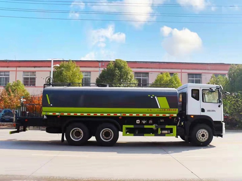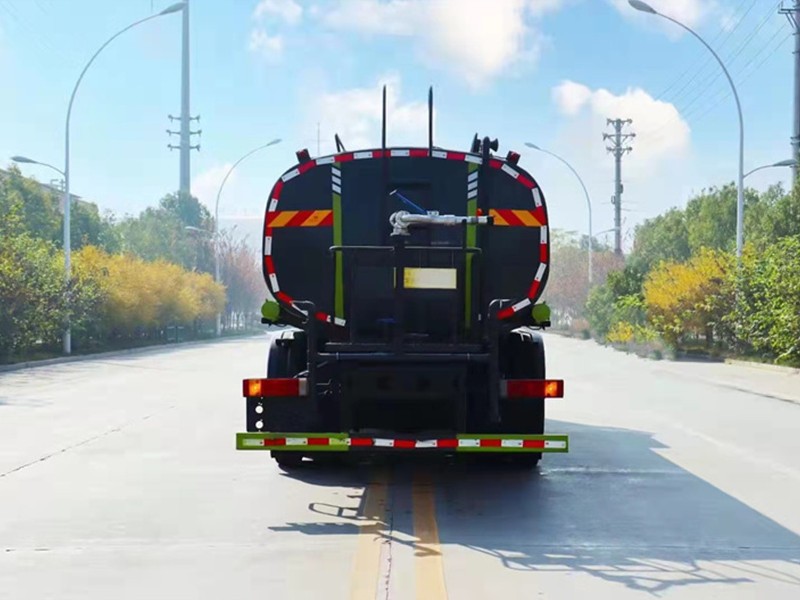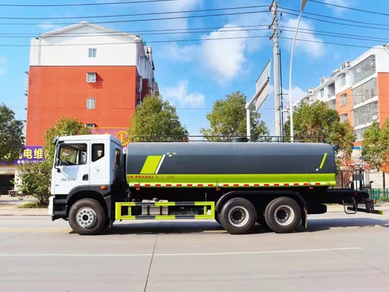 上装配置:罐体尺寸: 6200×2350×1530, 用5mm武钢碳钢板制作,容积约19方,罐内隔板具有防波作用,专用自吸自排洒水泵,前冲、后洒、侧喷、后工作平台、360度可调节绿化水炮,自流阀、滤网、消防接口(可连接消防栓取水,可作应急消防用),罐前量管(观察罐内水位)、罐后爬梯、罐上罐口、带简易护栏、抽水两管根,罐体表面双层油漆工艺,其它标配。