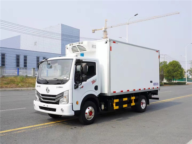 东风多利卡4米冷藏车,整车型号:EQ5041XLC5CDFAC,整车尺寸:5995*2310*2850mm,箱体尺寸:4000*2100*1800mm,20款多利卡D6N,1850/单排,广西玉柴YCY24140-60发动机,功率/马力:103KW/140马力,2360排量,万里扬6G40变速箱,轴距: 3308mm,7.00R16LT 8PR钢丝胎(铝合金轮辋),铝合金储气筒,前桥2.2吨,后桥3.5吨,3/3+3板簧,190车架,断气刹,ABS,空调,电动门窗中控锁倒车雷达