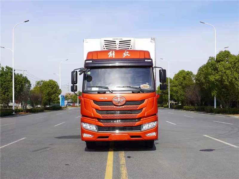 解放龙V6.8米高顶双卧冷藏车,整车型号:CA5180XLCPK2L2E6A80,整车尺寸:9150*2600*3995mm,箱体尺寸:6750*2450*2500mm,解放龙V高顶双卧驾驶室,锡柴CA6DLD-25E发动机,功率/马力:186KW/250马力 6600排量,轴距:5250mm,275/80R22.5真空胎,空调,气囊座椅,ABS,电动门窗,巡航系统,铝合金油箱,北斗+GPRS行车记录仪,电动举升,中控锁