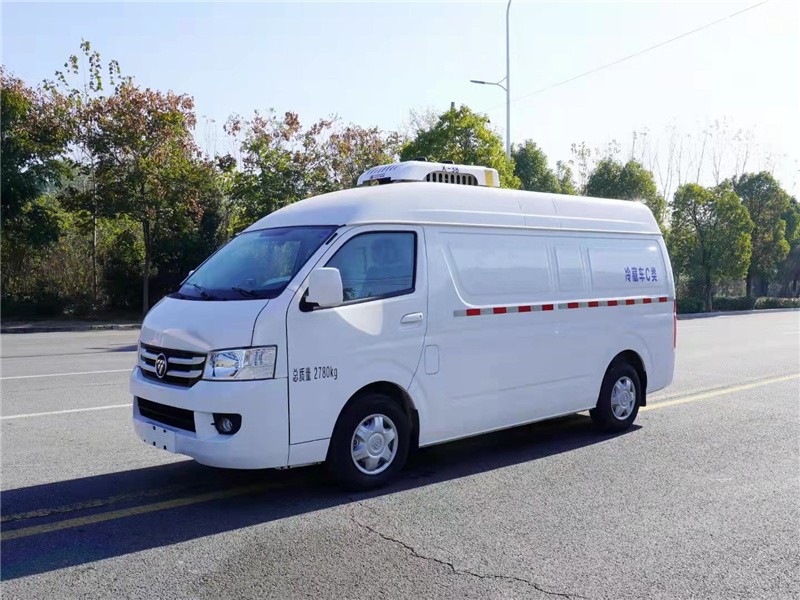 福田风景G7冷藏车,整车型号BJ5039XLC-E2,整车尺寸:5320*1695*2500mm,箱体尺寸:2900*1400*1430mm,沈阳航天三菱4K22D4M发动机,功率/马力:118KW/160马力2378排量,轴距:3050mm,195/70R15LT轮胎,钢板弹簧非独立悬架,针织座椅+头枕、全车三点式安全带,原厂空调、方向助力、5档变速箱、ABS、电动门窗、遥控钥匙、前雾灯、带轮毂罩