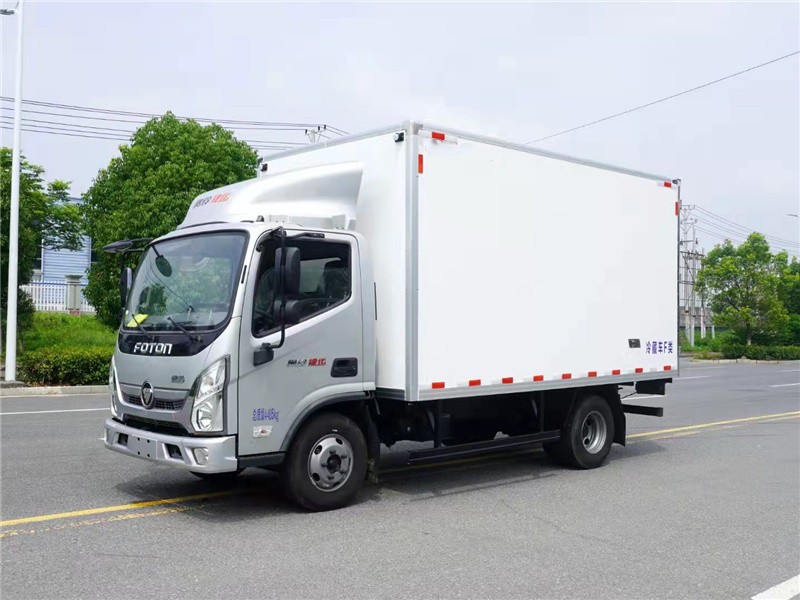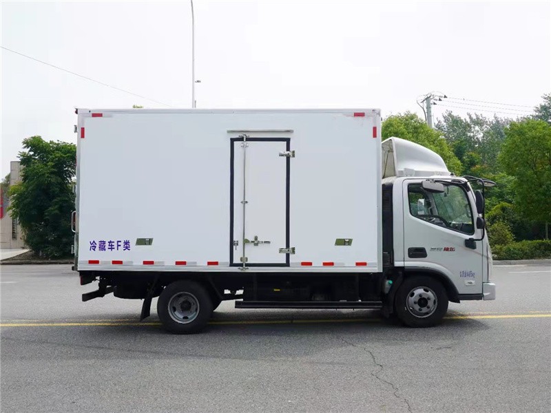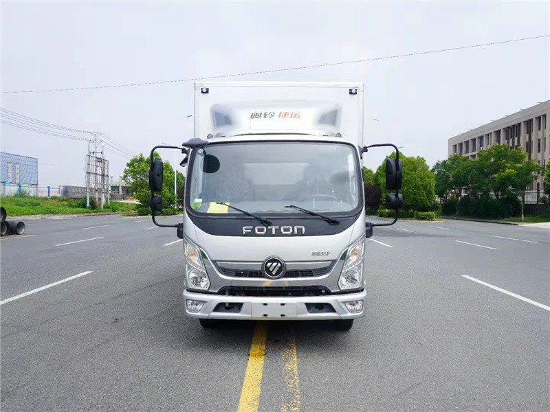 福田奥铃捷运4.2米冷藏车,整车型号:BJ5045XLC8JDA-AB1,整车尺寸:5995x2320x3265mm,箱体尺寸:4085x2100x2100mm,CTS-1880可翻转驾驶室,安徽全柴Q28-130E60发动机,功率/马力: 96KW/130PS 2800ml排量,轴距:3360mm,7.00R16LT 8PR钢丝轮胎,5档变速,5吨后桥,7.00R16LT 8PR轮胎,断气刹,动转,定速巡航,多功能四向调节方向盘,中控锁,电动玻璃,遥控钥匙,ABS,刹车自调臂,可调大灯,原厂空调