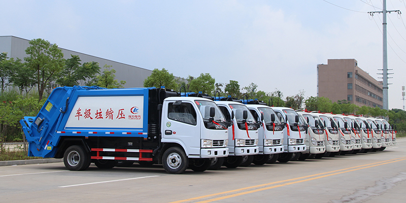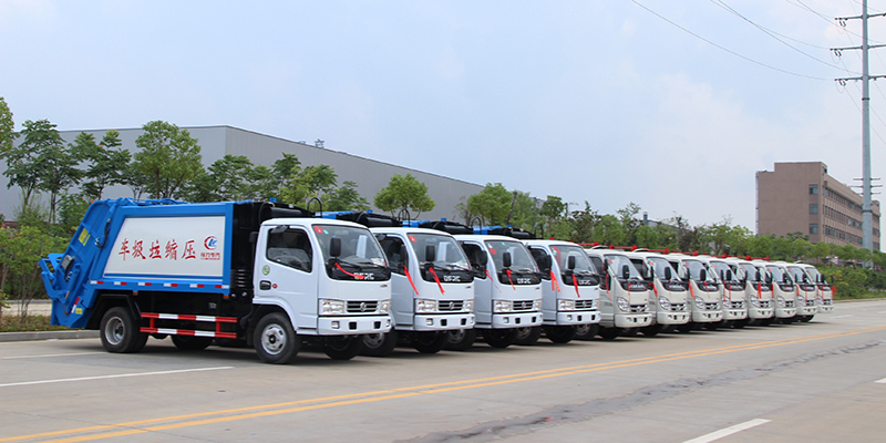 程力集团4台压缩垃圾车、8台密封垃圾车准备发车