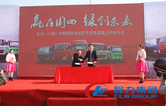 发布会上,双方签署了战略合作伙伴协议,旨在将东风特种商用专用车新款底盘引入随州市场,增进专用车产业发展需求,为公司转型升级及产品互推换代作出贡献。目前已涵盖罐式车、高空作业车、自卸车、环卫车、厢式(冷藏)车、道路养护车和清障车专用车等十八大系列500多个品种。本次推出的国四新款底盘,程力专用汽车股份有限公司上齐全了国家公告,可以充分满足不同类型客户的需求,实实在在地为客户提供更为专业、人性化、富有成效的产品。